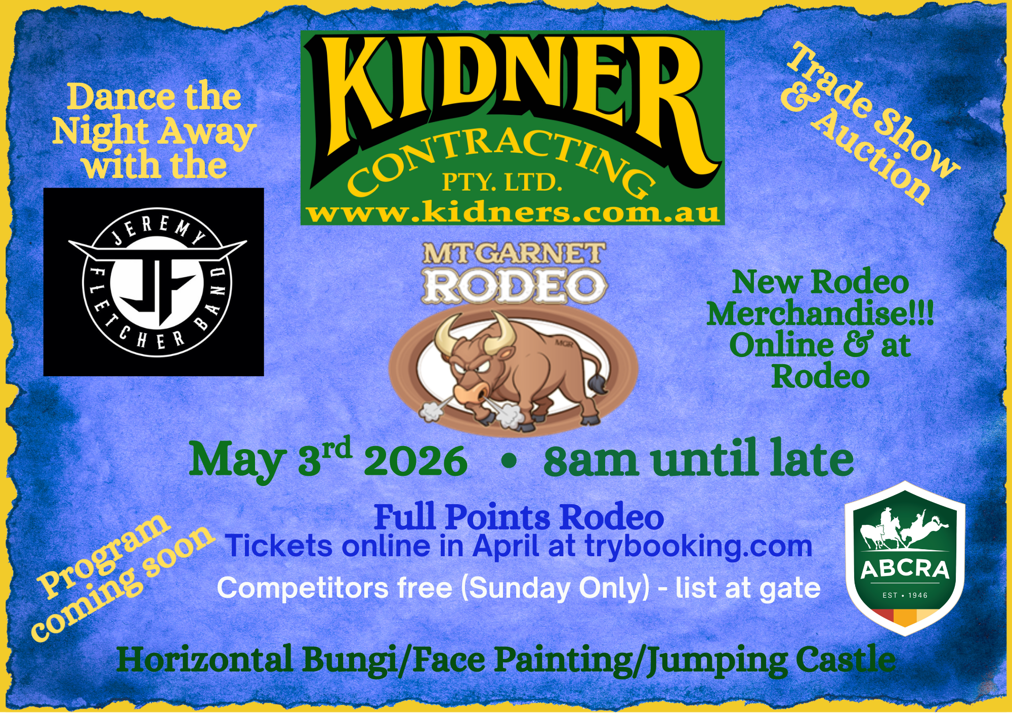 For all ticket enquires go to mtgarnettickets@gmail.com or Ph: 0461307520 – Please DO NOT contact the Races or Rodeo Associations for ticket information.